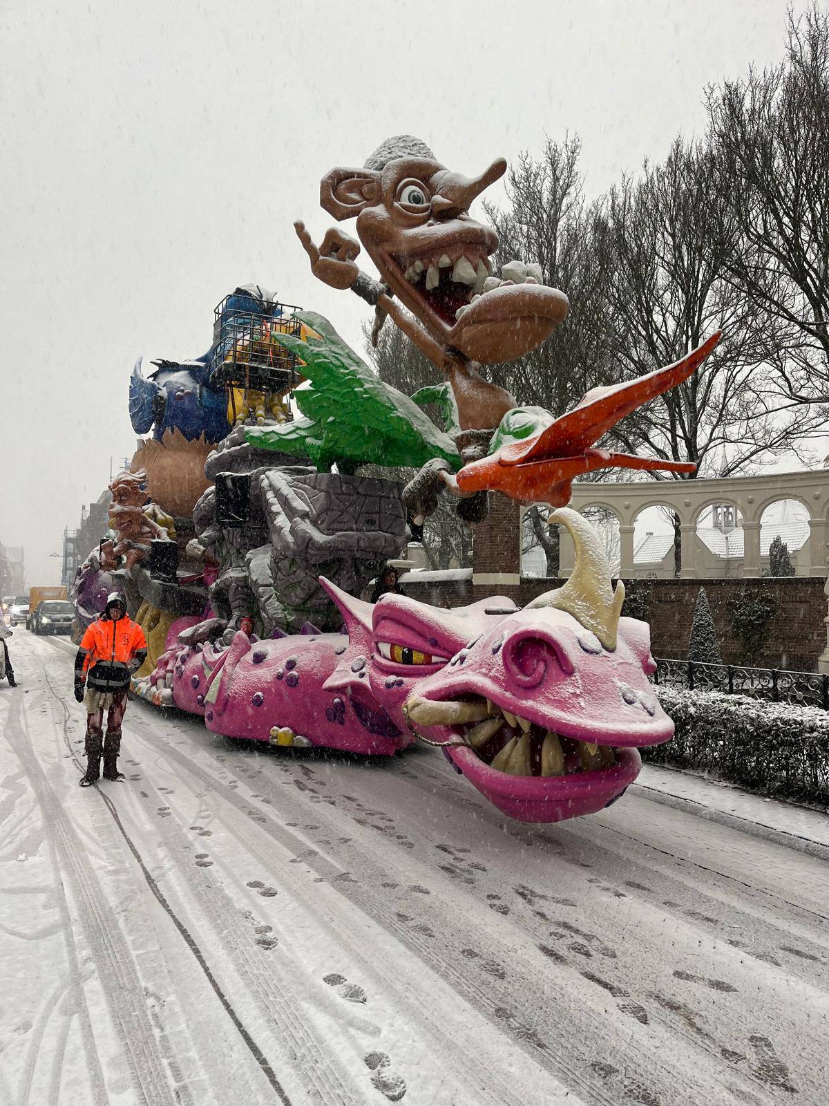 15 februari ut Puitenol (Oudenbosch). De ochtend begon met een prachtig zonnetje tijdens het opbouwen. We waren die dag ook prinsenwagen in het mooie Puitenol. Toen om 14:00 uur de optocht begon werd de lucht al een beetje grijs en het werd een stuk kouder en ja, precies dat we ongeveer over de helft waren van de optocht, begon het te sneeuwen maar het leverde wel een mooie 1e plaats bij de buitenwagens.