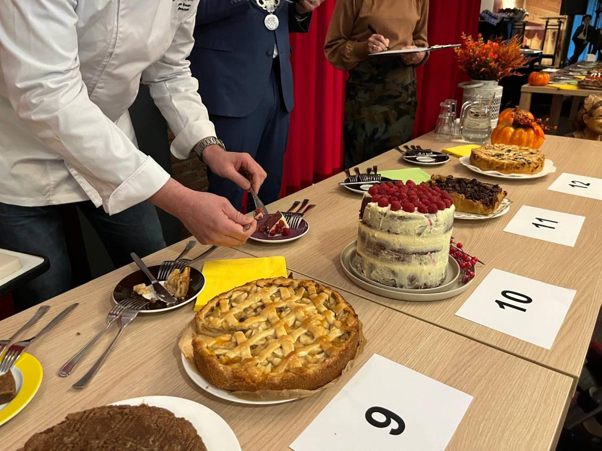 Elke taart werd vakkundig geproefd door de jury, van appeltaart, cake, een schitterende met fondant beklede taart in de vorm van een dame, MonChoutaart, je kon het zo gek niet bedenken of het stond op tafel.