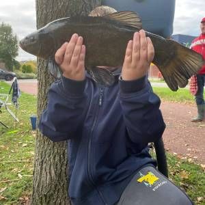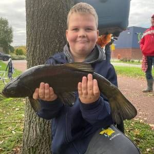 Op het moment dat je "schepnet" hoort weet je over het algemeen dat er een grote vis aan zit te komen. En dat was ook het geval. Een mooie zeelt van 47 cm werd door Sil uit het water gehaald.