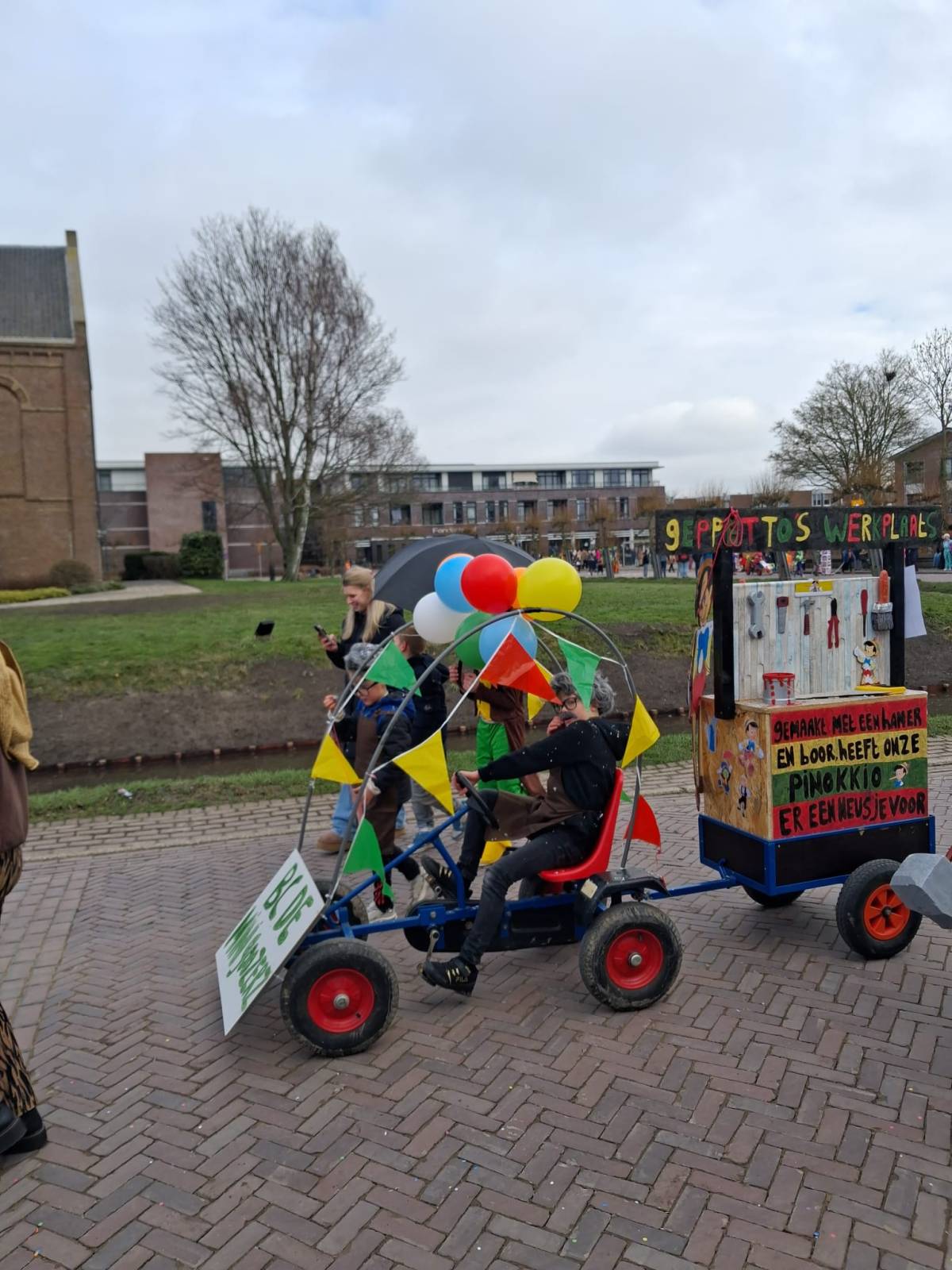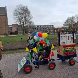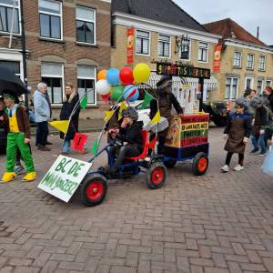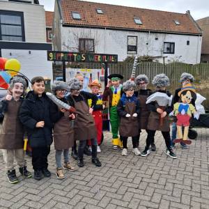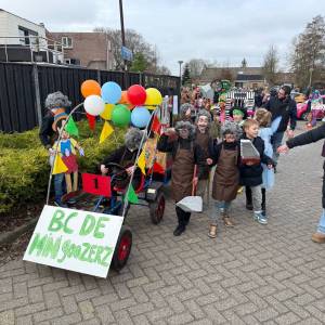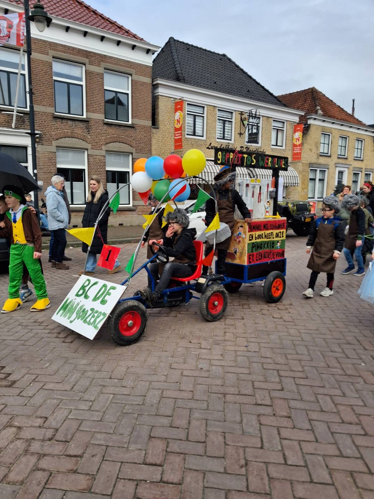 De enthousiaste groep – bestaande uit tien jongens en één meisje uit groep 5 van Basisschool De Fijne Aarde – liep dit jaar voor het eerst mee met de scholenoptocht. Onder de naam BC de Mini Goozers maakten zij meteen indruk met hun thema: Gepetto’s werkplaats.